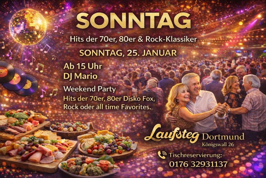 Erlebt eine stimmungsvolle Weekend Party mit den schönsten Hits der 70er & 80er, Disco Fox, Rock-Klassikern und zeitlosen All-Time-Favorites.