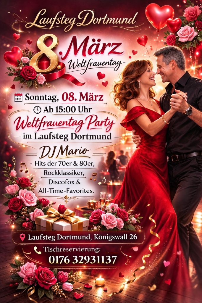 🌷 Weltfrauentag Party im Laufsteg Dortmund – Sonntag, 08. März ab 15:00 Uhr 🌷